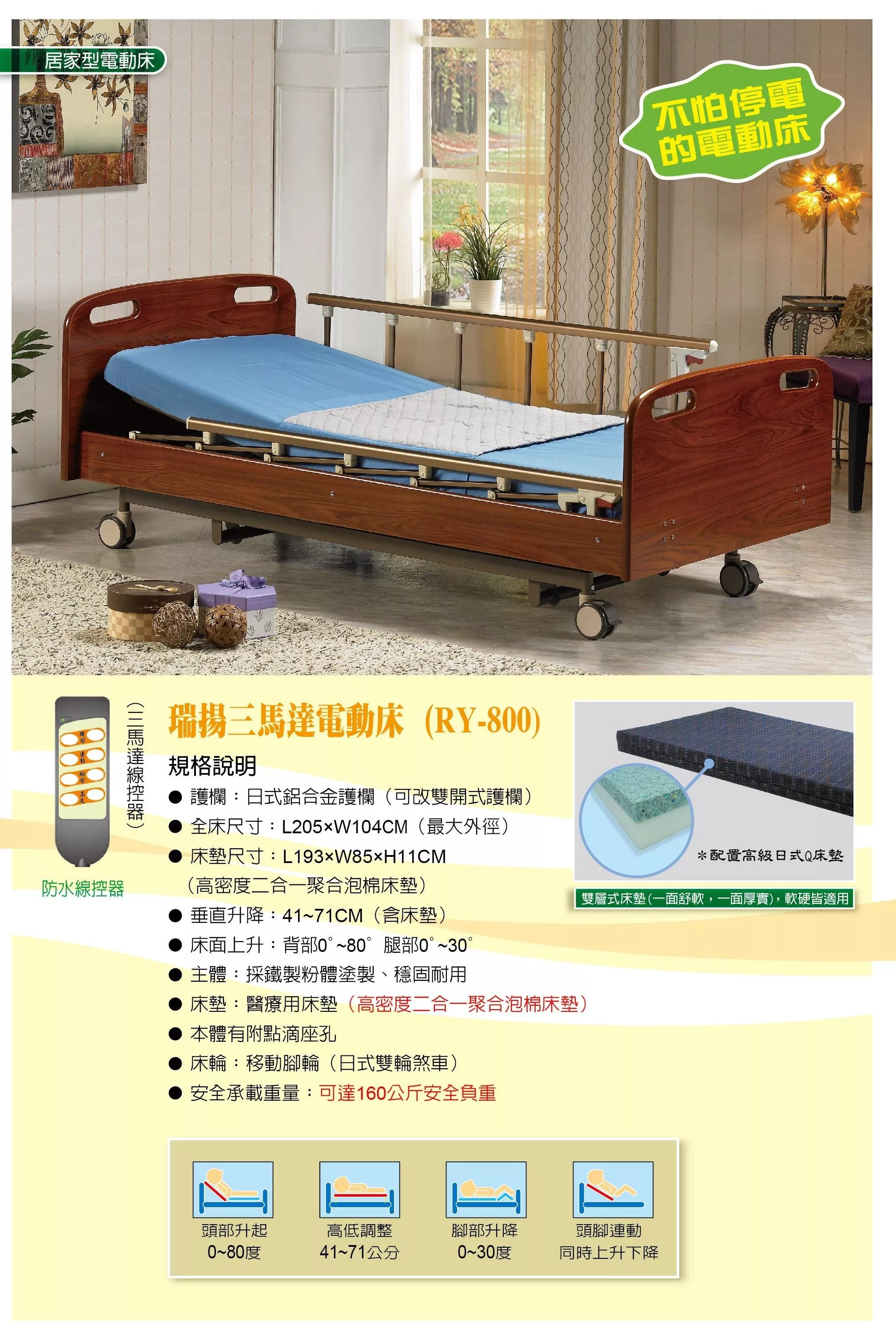 電動床 三馬達 不怕停電 瑞揚 RY-800 居家用照顧床 附加功能A 附加功能B