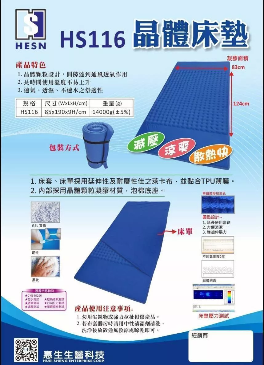 晶體凝膠床墊 惠生 HS116-新 凝膠床 含萊卡床罩 台灣製造