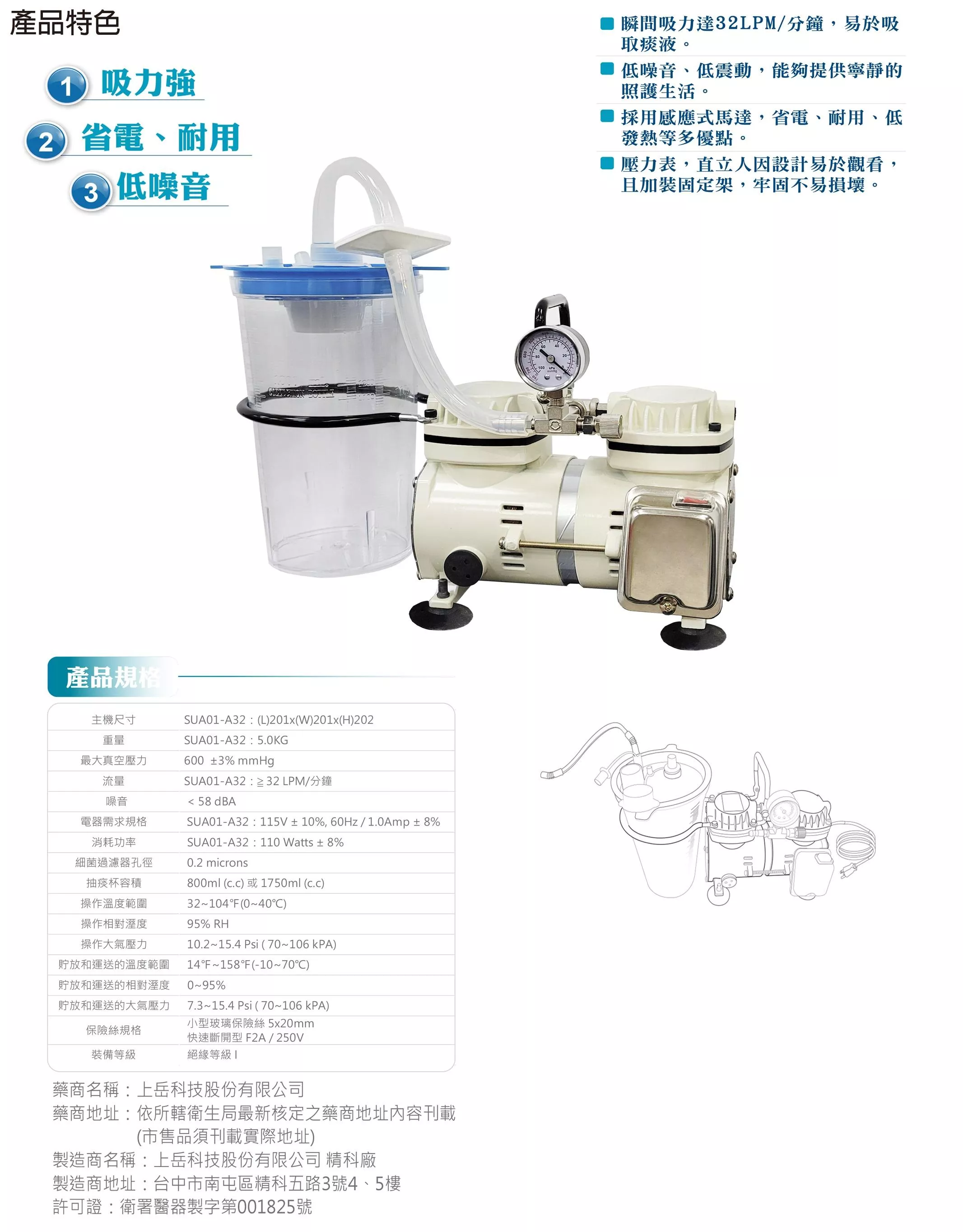 上岳 SUA01-A32 抽痰機(雙缸)