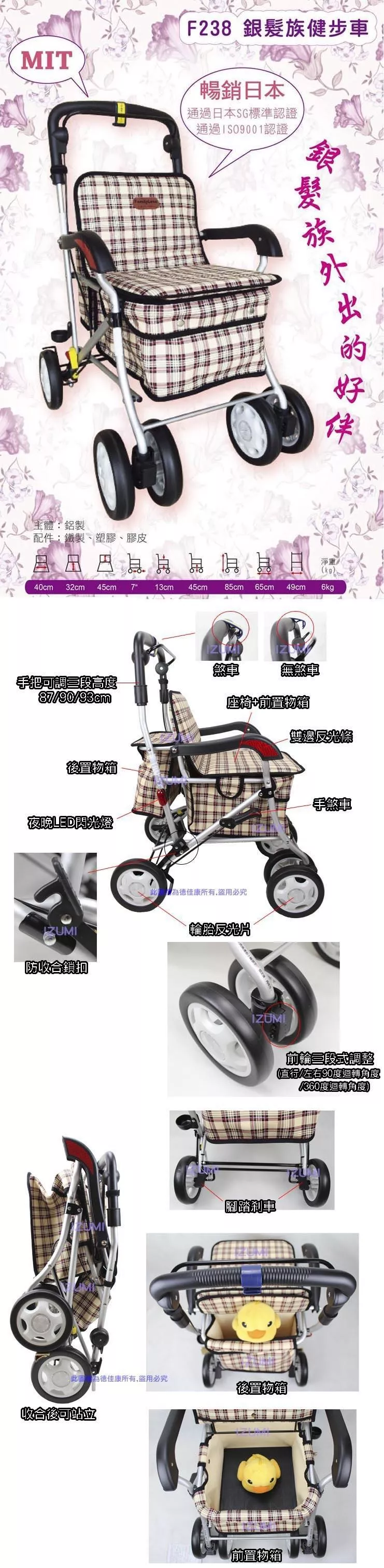 健步車 助行車 助步車 帶輪型 銀髮族健步車 杏華 F238(大) F827