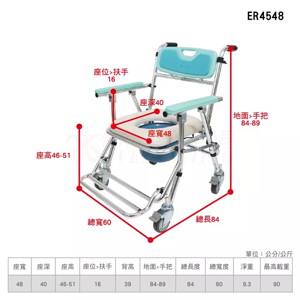 恆伸 ER4548 便利推-鋁合金有輪收合便椅-四合一款